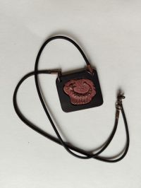 Náhrdelník, fantazijní tvoreček z mědi zapuštěn do ebenového dřeva.